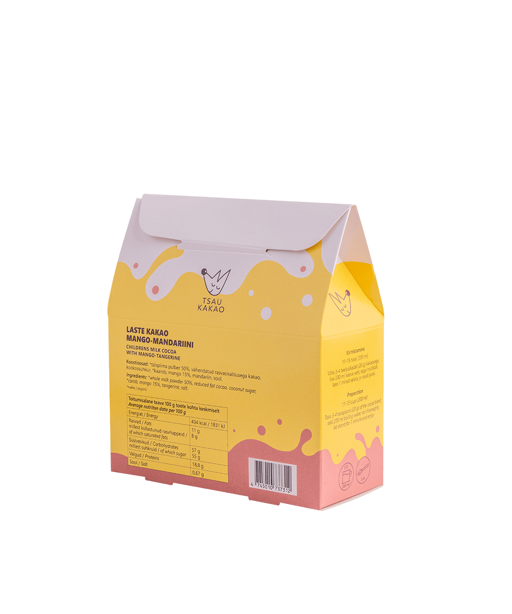 See mango-mandariini maitsega laste kakaojoogipulber on loodud just väikestele maiustajatele ning sobib suurepäraselt alates 3. eluaastast tervislikuks ja rõõmsaks vahepalaks.