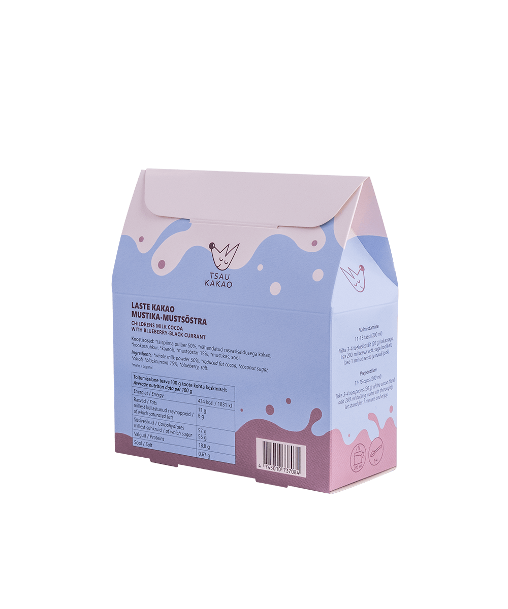 Mõnusalt marjane ja lapsemeelselt mahe! See mustsõstra-mustika kakao on loodud spetsiaalselt lastele, sobides suurepäraselt tervislikuks ja maitsvaks joogiks alates 3. eluaastast.