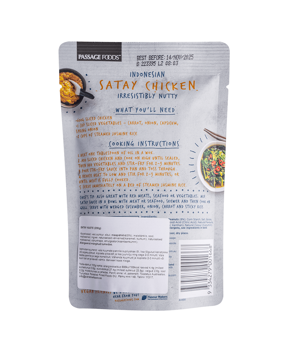 Satay kaste on Aasia stiilis wokikaste, mis ühendab pehme pähklise maitse ja kerge vürtsikuse.